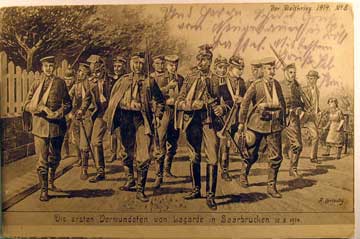 Card # 64956. View Larger | Rotate W.W. I German Feldpostkarte w/ Wounded Soldiers, Art. Sig., B&W, used 1914 w/ Military Usage wof F
