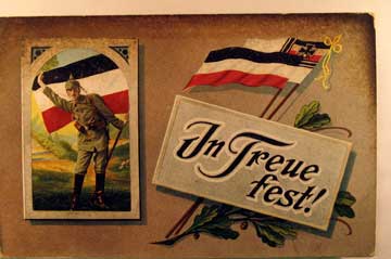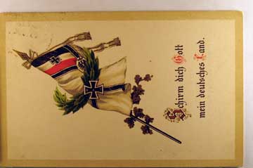 Card # 72099. View Larger | Rotate W.W. I German Patriotic w/ Flag, Very Nice PP pub., used 1915 DB emb very m cof VF