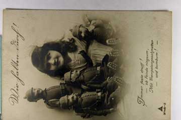 Card # 144209. View Larger | Rotate W.W. I, German Pub., Real Photo, Girl w/ Soldier Dolls DB F-VF