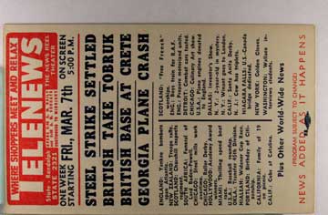 Card # 187705. View Larger | Rotate W.W. II, U.S. Pub., War News Reel Chicago, Theater Adv., “Telenews”, Fri., Mar. 6th VF