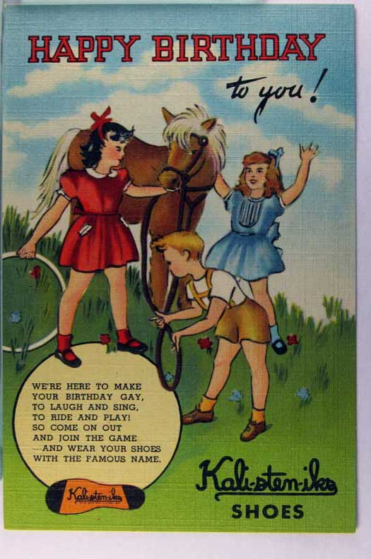 Lot #64. View Larger | Rotate Adv. Kalisteniks Shoes, Curt Teich Pub., w/ Birthday Greeting L VF