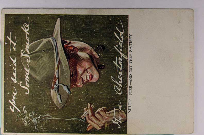 Lot #18. View Larger | Rotate Adv. Chesterfield Cigarettes, “Some Smoke” DB m wear F-VF