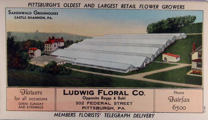 Lot #70. View Larger | Rotate Adv. Ludwig Floral Co., Pittsburgh, PA, Blotter from Curt Teich m wear Near VF