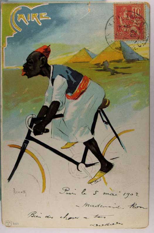 Lot #134. View Larger | Rotate French Pub. Art Card, Bicycles and Riders of Different Lands Ser., #6096, “Caire”, Art. Sig. UB m flts Near F-VF