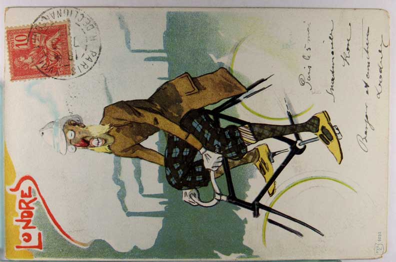 Lot #136. View Larger | Rotate French Pub. Art Card, Bicycles and Riders of Different Lands Ser., #6096, “London”, Art. Sig. UB m flts Near F-VF