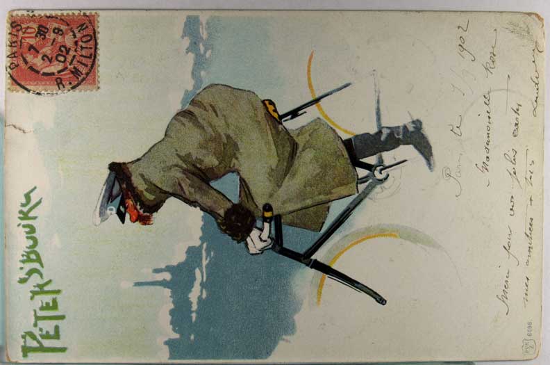 Lot #133. View Larger | Rotate French Pub. Art Card, Bicycles and Riders of Different Lands Ser., #6096, “Petersburg”, Art. Sig. UB m flts Near F-VF