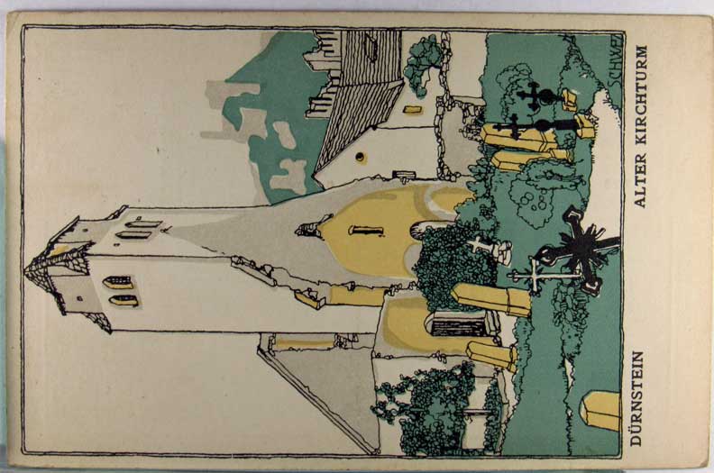 Lot #106. View Larger | Rotate Wiener Werkstatte, #720, Art. Sig. Karl Schwetz, “Durnstein, Alter Kirchturm”, Used in U.S. w/ Prang Co. Overprint DB m wear F-VF