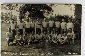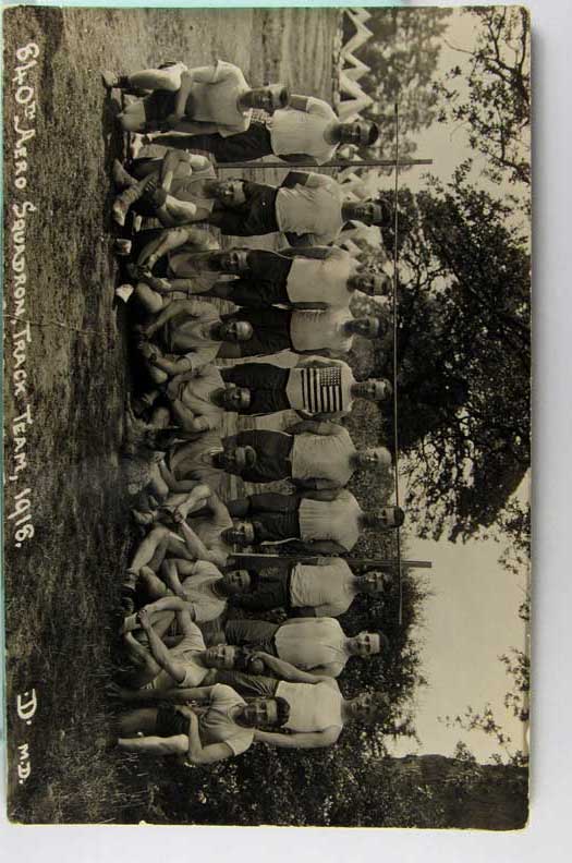 Lot #1215. View Larger | Rotate W.W. I, Real Photo, “840th Aero Squadron Track Team”, Unusual w/ Very Early American Flag T-Shirt edge cr & m cor wear F-VF