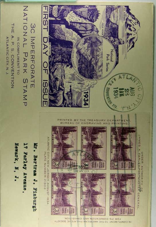 Lot #1376. View Larger | Rotate Cover, U.S. First Day Cover, w/ #750 National Parks Souvenir Sheet and Montage Cachet VF