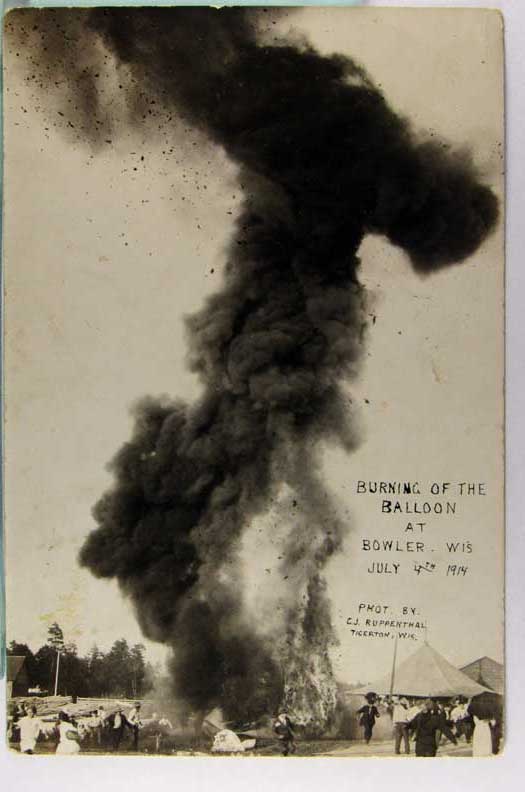 Lot #1180. View Larger | Rotate Balloon Burning, Bowler, Wisconsin 1914, Real Photo w/ Cyko P.C. back m cor wear F-VF