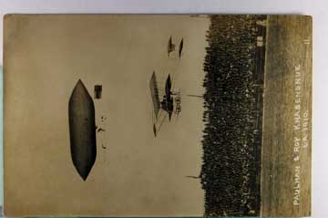 Lot #1179. View Larger | Rotate Airship & Plane, Real Photo, “Paulhan & Roy Knabensnue - LA 1910”, Used Same VF