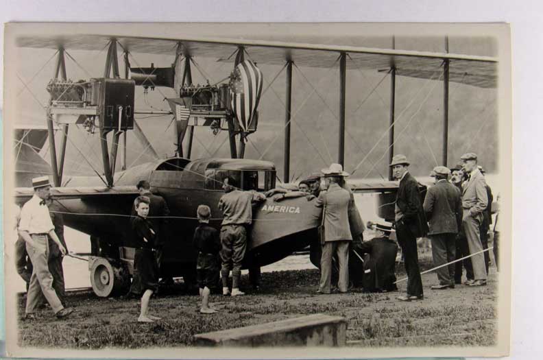 Lot #1191. View Larger | Rotate Early Sea-Plane, Real Photo w/ AZO P.C. back, “Glenn Curtiss at Winona Lake, Indiana” m cor cr Near VF