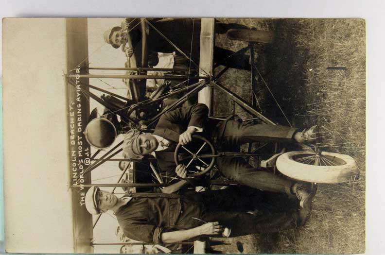 Lot #1203. View Larger | Rotate Aviator Lincoln Beachy, Real Photo w/ AZO P.C. back m cor cr F-VF