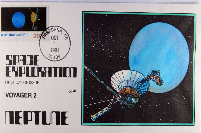 Lot #1380. View Larger | Rotate Hand-Painted First Day Cover by Collins, Space Exploration, “Voyager 2 Neptune”, 1991 VF