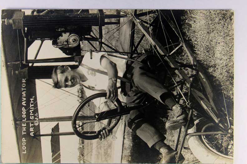 Lot #1341. View Larger | Rotate Aviator Art Smith, Real Photo w/ AZO P.C. back, “Loop the Loop Aviator” VF