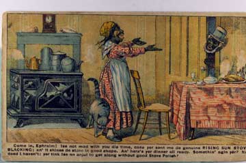 Lot #304. View Larger | Rotate Trade Card Adv. Rising Sun Stove Blacking, Double Card m edge flts Near F-VF