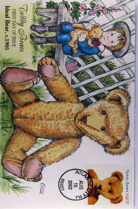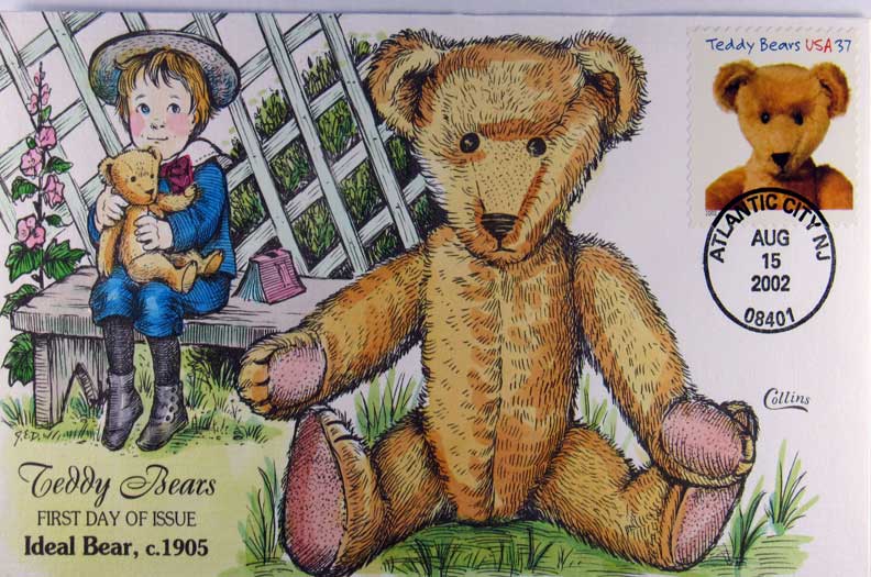 Lot #361. View Larger | Rotate Hand-Painted First Day Cover by Collins, Teddy Bears, “Ideal Bear”, 2002 VF