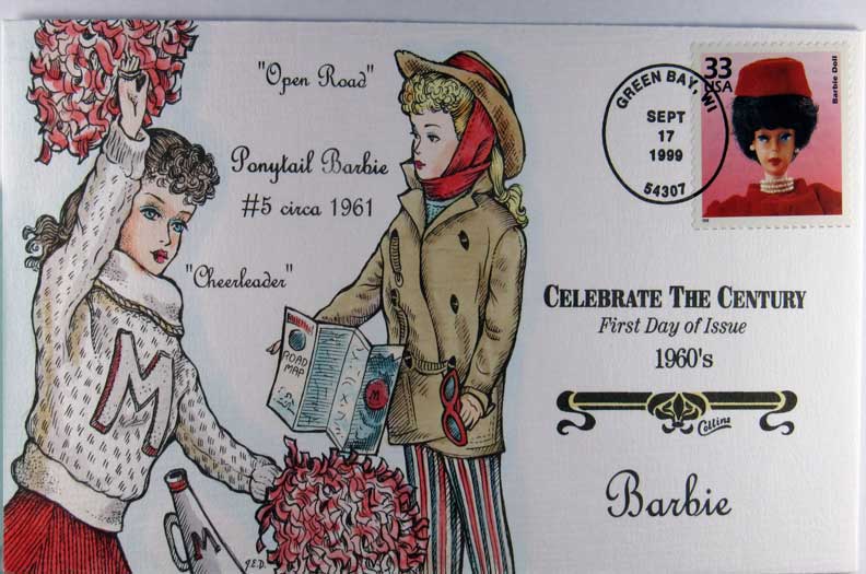 Lot #362. View Larger | Rotate Hand-Painted First Day Cover by Collins, “Barbie”, 1999 VF