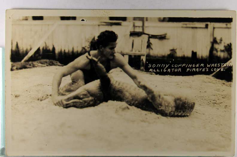 Lot #383. View Larger | Rotate Alligator Wrestler, “Sonny Coppinger”, Real Photo w/ DOPS P.C. back m pinholes F-VF