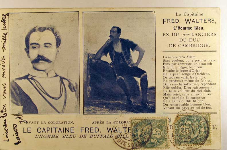 Lot #367. View Larger | Rotate Circus Related, Captain Fred Walters, The Blue Man, Used UB m pwof & stamps on face F-VF