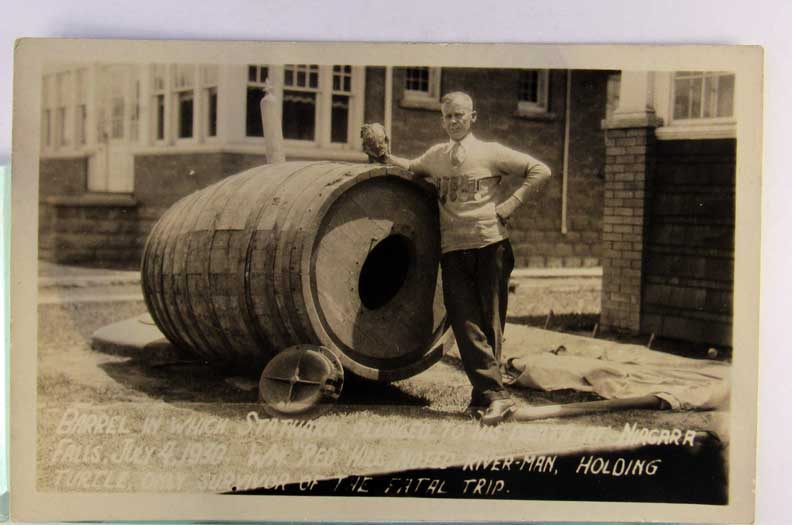 Lot #390. View Larger | Rotate Daredevil,William Red Hill, Went over Niagara Falls in a Barrel, Real Photo w/ AZO P.C. back, “Holding Turtle, Only Survivor of the Fatal Trip” VF