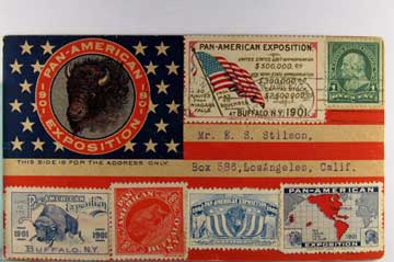Lot #408. View Larger | Rotate 1901 Pan-American Exposition, Trade Card Used Buffalo as Postcard w/ Expo. Seals F-VF