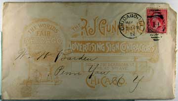 Lot #392. View Larger | Rotate 1892 Illust. Cover Adv. Chicago World’s Fair, Used Chicago, w/ Adv. Sign Contractors cor flt F