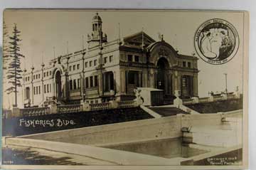 Lot #413. View Larger | Rotate 1909 Alaska Yukon Pacific Expo., Real Photo, Fisheries Bldg. DB m cor ewear & m edge cr F-VF
