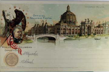 Lot #396. View Larger | Rotate 1893 Columbian Expo., Goldsmith ser. on U.S. Gov’t Postal Card # UX 10, Government Building m cor wear VF
