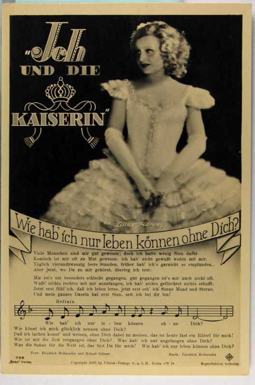 Lot #457. View Larger | Rotate Lillian Harvey, German Real Photo, Song Card, #796 VF