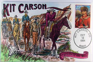Lot #521. View Larger | Rotate Hand-Painted First Day Cover by Collins, Kit Carson, “Legends of the West”, 1994 VF