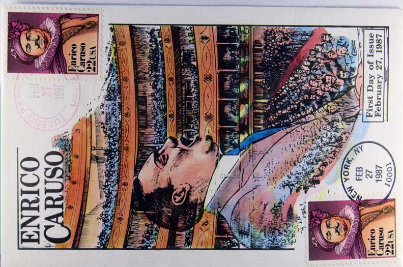 Lot #506. View Larger | Rotate Hand-Painted First Day Cover by Collins, Enrico Caruso, 1987 VF