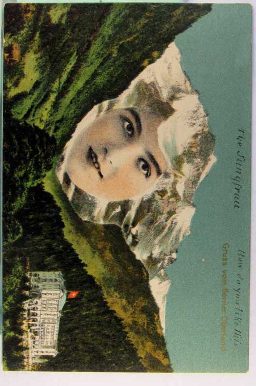 Lot #535. View Larger | Rotate Fantasy Face in Mountain, “Gruss vom Bener Oberland” DB m wof & cor cr F-VF
