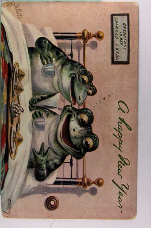 Lot #444. View Larger | Rotate Fantasy Frogs, R. Tuck pub. Breakfast In Bed Ser. 9321, Art. Sig. Ellam DB cor wear & m cof Near F-VF