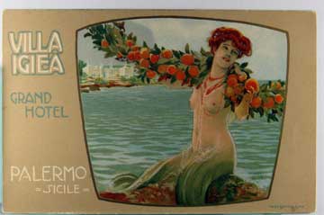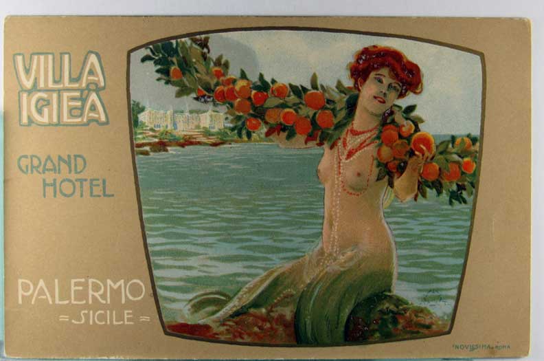 Lot #580. View Larger | Rotate Fantasy Mermaid, Adv. Villa Igiea Grand Hotel, Sicile, Italy DB Near VF