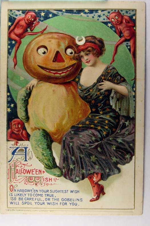 Lot #589. View Larger | Rotate Halloween, Int. Art Pub. Co., Art by Wall, Used 1908 DB emb m wear & m face soil F-VF