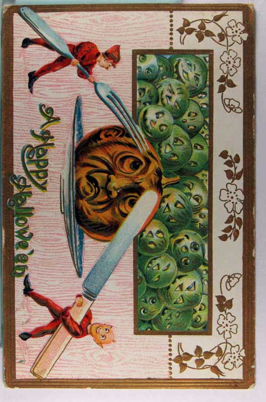Lot #608. View Larger | Rotate Halloween, Int. Art Pub., Art by Ellen Clapsaddle, w/ Fantasy Vegetable People DB emb Near VF