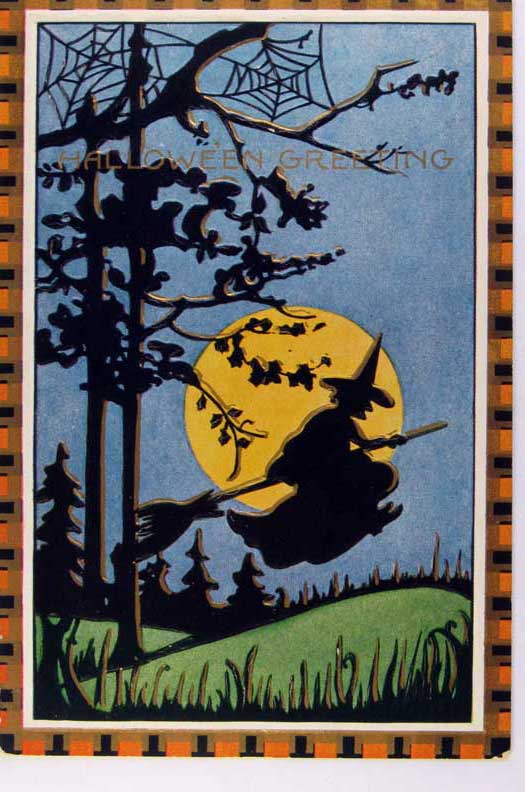 Lot #533. View Larger | Rotate Halloween, Winsch Pub., Art by Frexias, Rare w/ Checkered Border DB emb m st VF