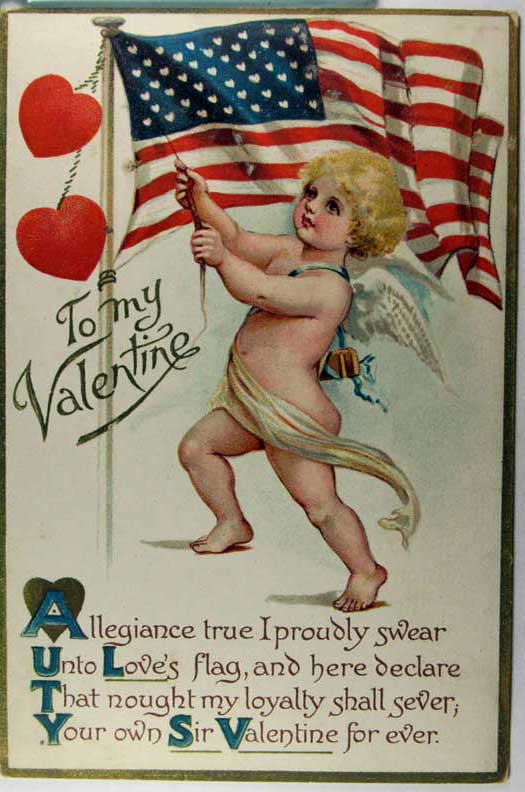 Lot #788. View Larger | Rotate Valentine w/ Patriotic Theme, BB London Ser. #10 DB emb m cor wear VF