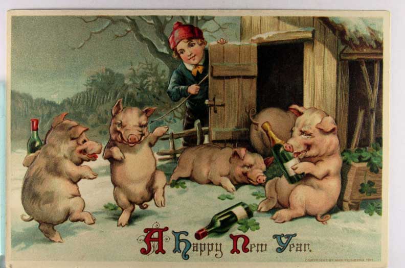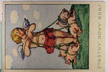 Lot #746. View Larger | Rotate New Year w/ Pig, Czech Pub., Used DB m cor cr F-VF