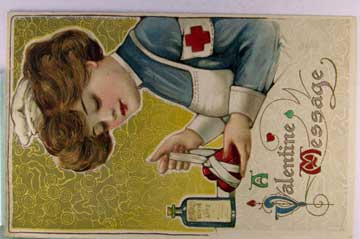 Lot #774. View Larger | Rotate Valentine’s Day, Winsch Pub., w/ Art by Schmucker, Incl. Red Cross Nurse, used 1910 DB emb m edge foxing F-VF