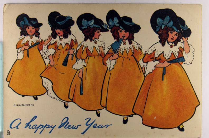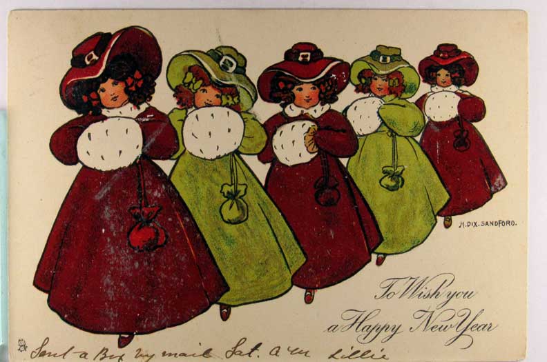 Lot #758. View Larger | Rotate New Year, Art. Sig. Sanford, R. Tuck Pub., Ser. 6074, Used 1909 DB m cor cr F-VF