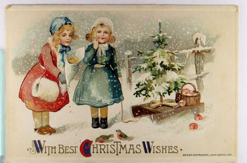 Lot #708. View Larger | Rotate Christmas, Winsch Pub., Art by Schmucker, Used 1914 DB emb m cor cr Near VF
