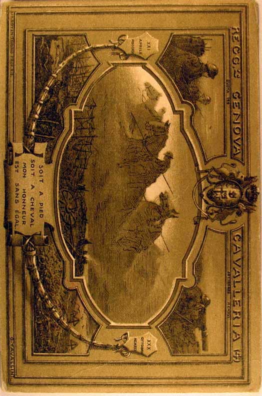 Lot #823. View Larger | Rotate Italian Regg. Genova Cavalleria, 1919, Green Color, Art. Sig. DB m cor wear F