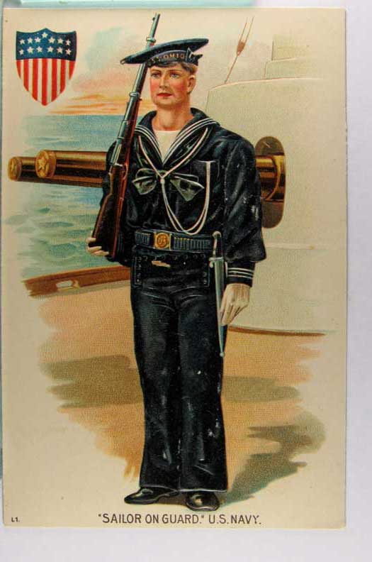 Lot #795. View Larger | Rotate U.S. Military, Langsdorf Pub., #L1, “Sailor on Guard U.S. Navy” DB emb VF