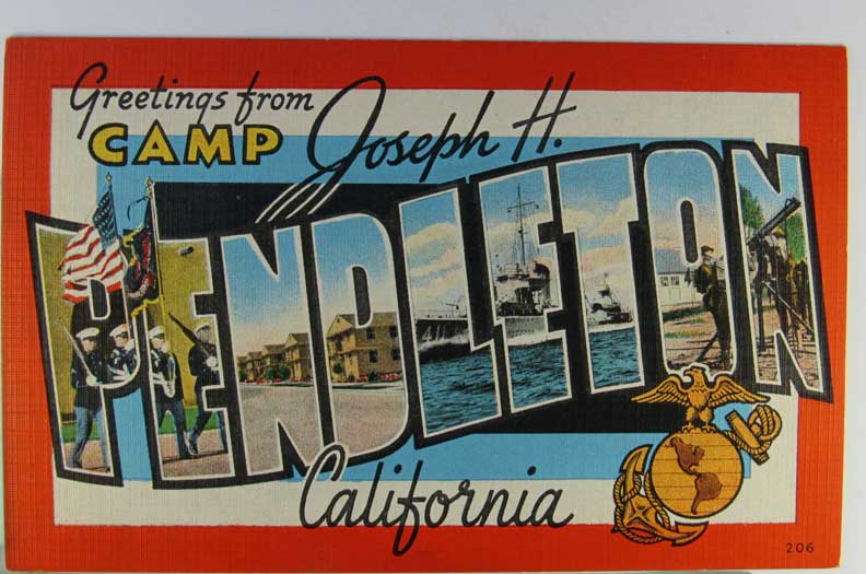 Lot #794. View Larger | Rotate U.S. Military, Large Letter Linen, “Camp Pendleton, California” L VF