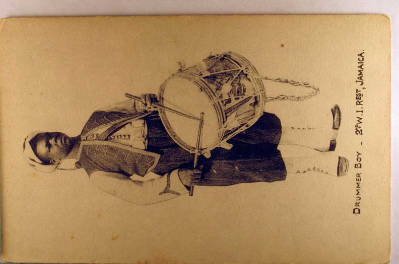 Lot #828. View Larger | Rotate Jamaica, Printed Photo, “Drummer Boy - 2nd W.I. Regt., Jamaica” DB F