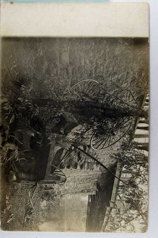 Lot #1310. View Larger | Rotate Horse-Drawn Carriage Wreck, Real Photo w/ AZO P.C. back, Used Millersburg, Indiana m wear F-VF