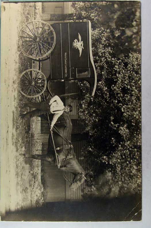 Lot #1308. View Larger | Rotate Horse-Drawn Wagon Adv. White Eagle Laundry Co., Real Photo cor crs F-VF