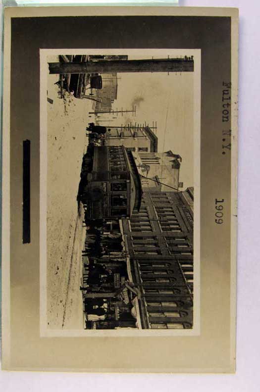 Lot #1326. View Larger | Rotate Streetcar in Snow, Real Photo w/ AZO P.C. back, Fulton, New York, Dated 1909 VF